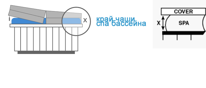В том случае, если юбка крышки джакузи будет слишком длинной, и будет касаться деревянной направляющей, она может собраться в гармошку и толкнуть покрытие вверх. У вашей джакузи нет деревянного рельса по периметру? Вычислите расстояние от верха акрила до нижней части акрилового края мини бассейна и добавьте к полученному значению еще пол дюйма.