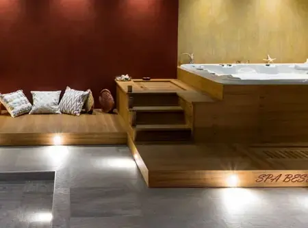 Спа отель для любителей простой деревенской жизни с хорошим японским рестораном, батлером, йогой у прудика и отмоканием в джакузи после тенниса. Сюда же можно заказать мохито, прямо не выходя из воды. Дизайн тоже максимально простой. Натуральный камень, качественное дерево, дорогой текстиль сдержанных тонов. Разноуровневый подиум позволяет легко войти в воду, поставить бокал рядом и забыть о городской суете на ближайшие 24 часа.