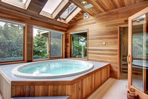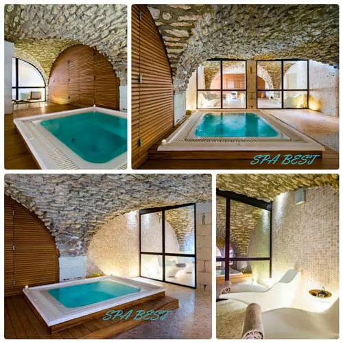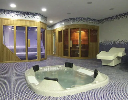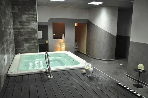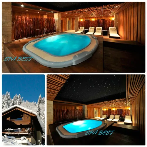 Биоморфные формы велнесс зоны Встраиваемая гидромассажная ванна спа — прекрасная быстро окупаемая инвестиция для отеля, загородного клуба или глэмпинга Встроенная гидромассажная ванна джакузи Formentera в отеле рядом с сауной и