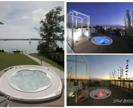 Уличный джакузи в отель, глэмпинг и гостевой дом стал обязательным оборудованием для бизнеса гостеприимства. Посмотрите, насколько по-разному выглядит одна и та же модель коммерческого бассейна спа в вечернее время. Подводный прожектор превращает джакузи в настоящее украшение сада. Подсветка джакузи смотрится особенно выигрышно в корпусе светлого цвета, именно поэтому мы часто рекомендуем клиентам остановить свой выбор на классической белой или платиновой чаше.