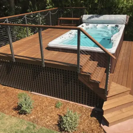 В данном проекте речь идет о Master Spa 15 Deep Swim Spa, купленном домовладельцем из Калифорнии. Клиенты долго искали лучший материал для террасы. Важно было создать удобную зону обслуживания оборудования своего нового спа-бассейна с противотоком.