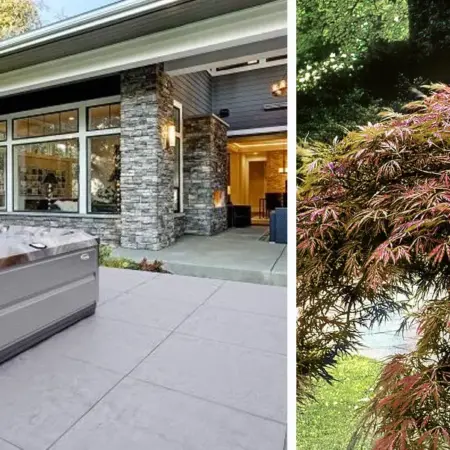Например, японские клены контрастной окраски. Они прекрасно смотрятся вместе со спа бассейном, хотя и не имеют ни единого цветка.