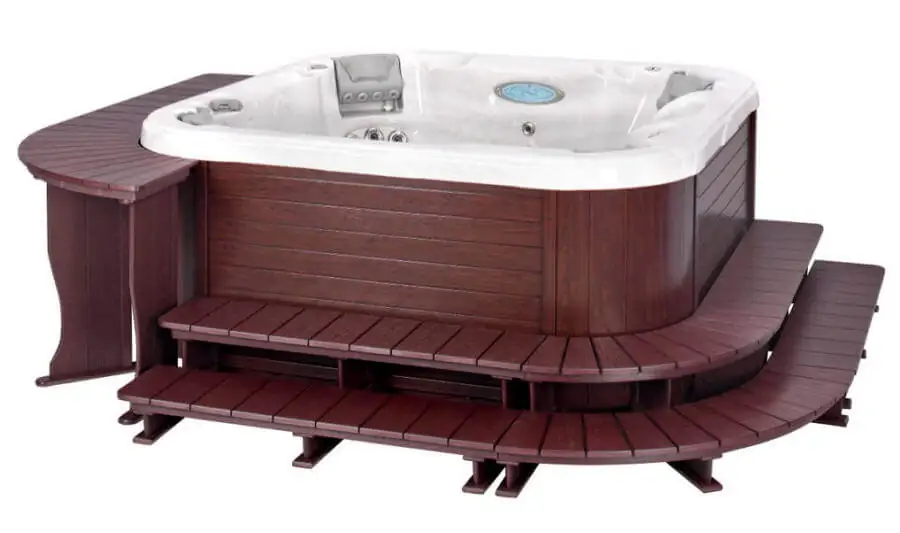 Барная стойка и ступени для джакузи Ступени для джакузи и барная стойка для завтраков на улице добавят комфорта вашей спа зоне. Купить или заказать лестницу дополнение к вашему уличному спа