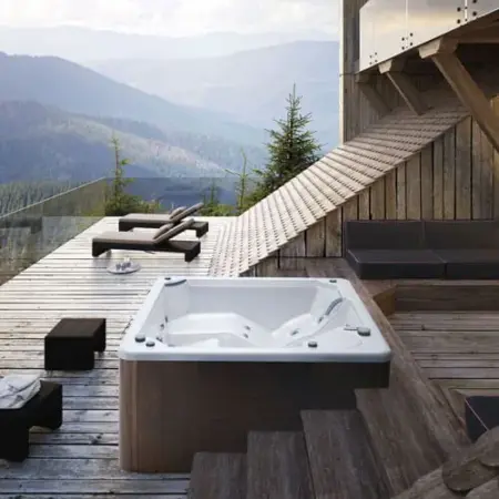 В современном ландшафтном дизайне уличное джакузи и мини-бассейн спа становятся неотъемлемой частью уютных дворов и садовых пространств. Бассейн с легкостью превращает обычное пространство в оазис релаксации и гармонии. Окружая гидромассажную ванну спа яркими растениями и декоративными зелеными насаждениями, вы тем самым создаете атмосферу спокойствия и непринужденности. Следовательно, работаете над организацией среды, которая способствует полному расслаблению и наслаждению каждым моментом.