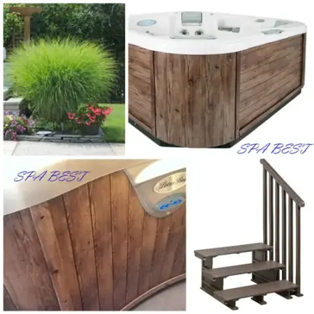 Особенно эффектно зона спа может выглядеть весной и летом. Весна означает возможность много времени проводить на террасе, во дворе и в саду. Красиво обустроить зону уличного спа бассейна достаточно просто. Наружная обшивка джакузи Винтажный Кедр (Vintage Cedar) выдержана в холодных оттенках коричневого, столь любимого скандинавским дизайном.