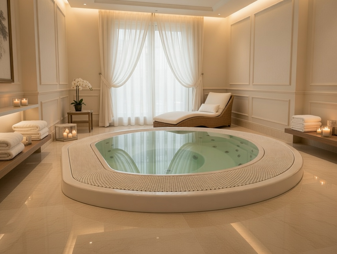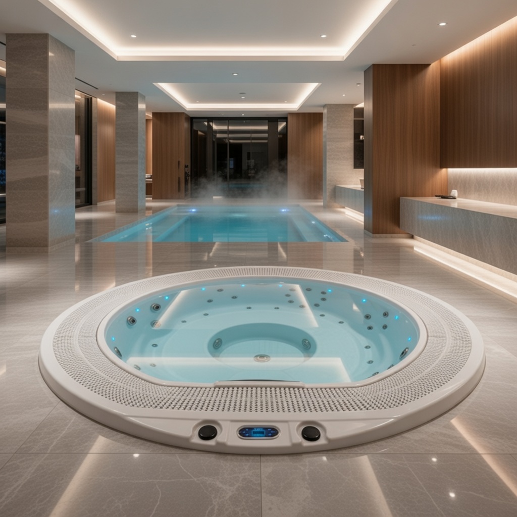 Круглый переливной джакузи Antarctic Spas Atagava напольная версия