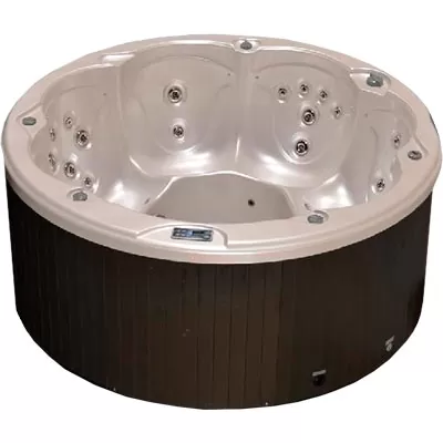 Круглый уличный мини бассейн Pesaro Waterwave Spas на 6 человек. В первую очередь этот мини-бассейн интересен своим классическим дизайном. Круглая форма джакузи всегда очень востребована. Во многом это объясняется внешним сходством с природным термальных источником. К тому же по центру чаши расположен купольный кластер форсунок, создающий красивый эффект донного гейзера и активно прорабатывающий голеностоп.