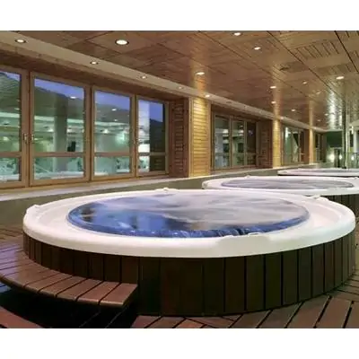 Большой круглый переливной спа бассейн на 10 человек AstralPool Coliseum мы рекомендуем для покупки и встроенной установки в аквапарках, фитнес клубах и спа центрах отелей.