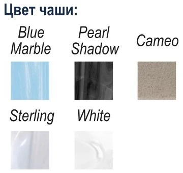 • Цвета чаши встраиваемого джакузи: Pearl Shadow, Cameo, Sterling, Blue Marble, White