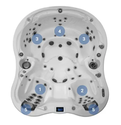 2. Женское ложе с системой динамический массаж. Изюминка бассейна – сидение с системой движения форсунок Динамический Массаж и регулируемой по высоте Массажной подушкой NeckFlex.