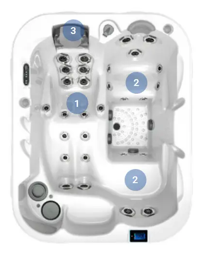 1. Мужское ложе с системой динамический массаж. Изюминка бассейна – сидение с системой движения форсунок Динамический Массаж и регулируемой по высоте Массажной подушкой NeckFlex.