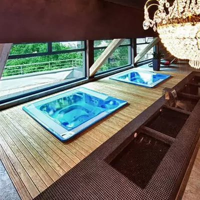 Стоит перечислить те детали, которые придают ему уникальность. В первую очередь это необычное решение входной зоны. Оно задумано так, чтобы придать джакузи сходство с морским берегом. Необычным было решение расширить внутреннее пространство, освободив его от ступенек или римской лестницы. Именно этот ход позволяет комфортно расположиться в джакузи пяти-шести купальщикам одновременно без малейшего ущерба для личного пространства каждого из них.
